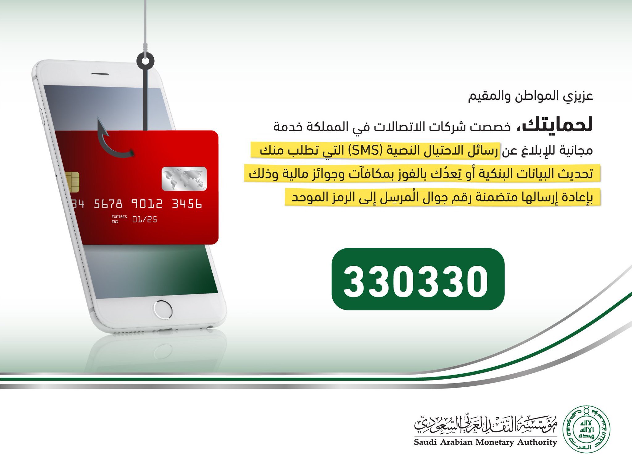 Sama مؤسسة النقد العربي السعودي On Twitter لحمايتك خدمة مجانية للإبلاغ عن رسائل الاحتيال النصية For Your Own Protection A Free Service To Report Fraud And Faked Sms مؤسسة النقد Sama Https T Co 2jfjxvl4nq
